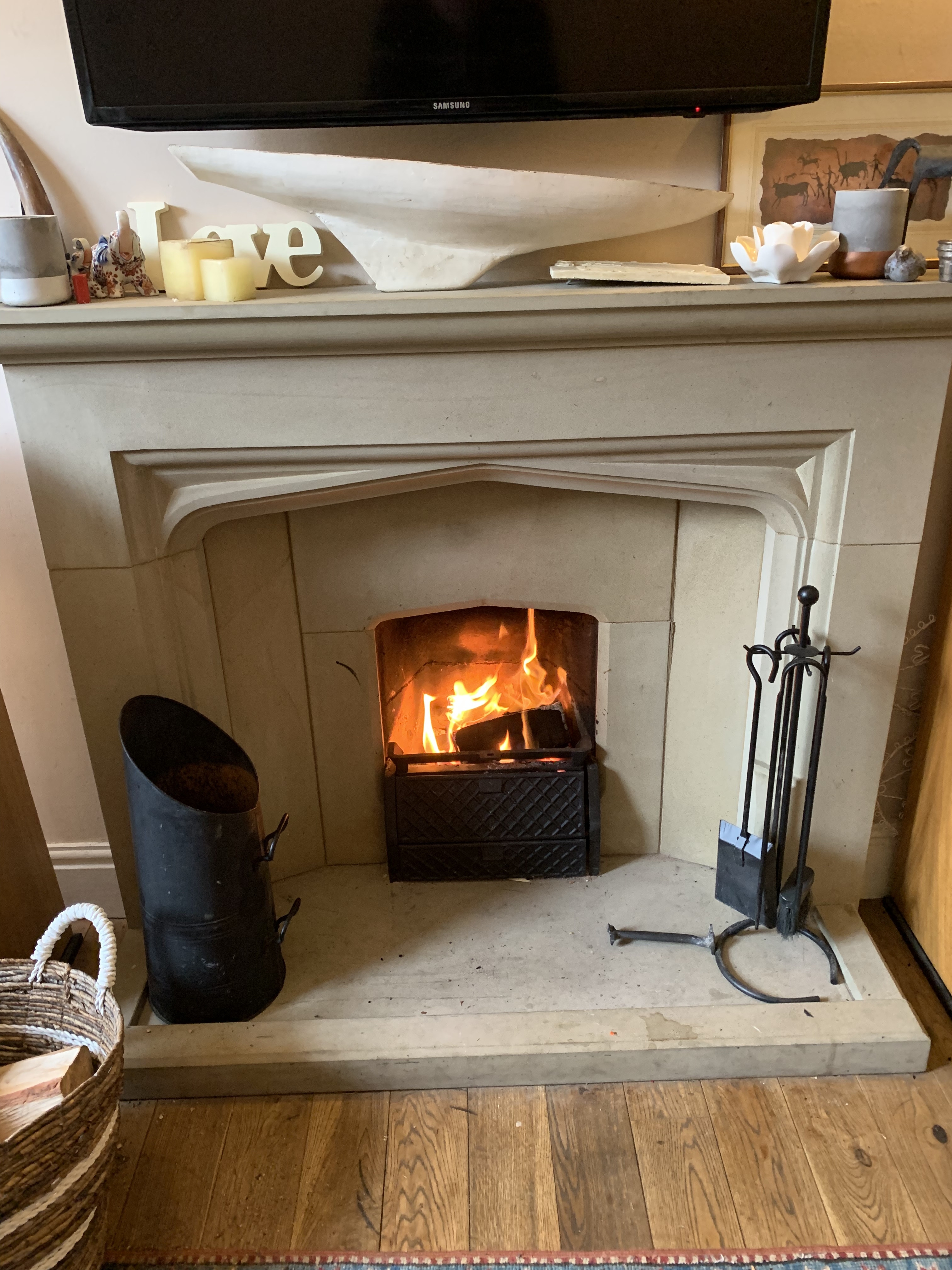 The lever at the front is good if you want to dim the fire down.