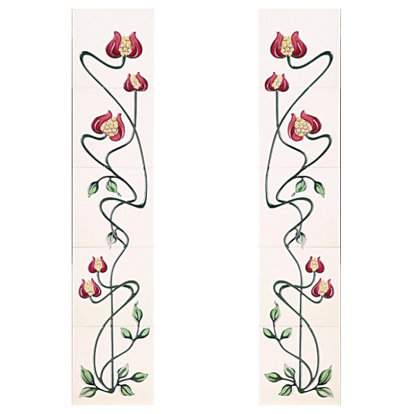 This Mediterranean Poppy Ivory & Burgundy Fireplace Tiles - Tube Lined Set of 10 is a vibrant and timeless decorative tile set perfect for enhancing cast iron fireplace inserts and surrounds.
